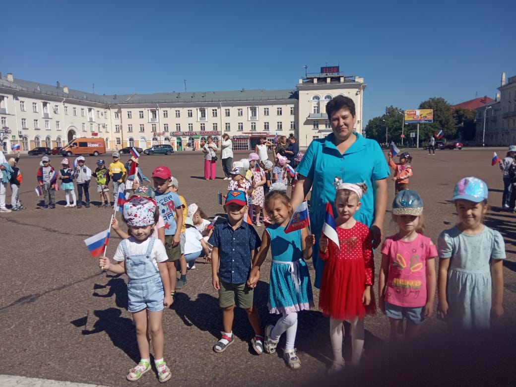 Сейчас День государственного флага — праздник свободы, гражданского мира и доброго согласия всех людей на основе закона и справедливости. Этот праздник — символ национального единения и общей ответственности за настоящее и будущее нашей Родины. Наши воспитанники приняли участие в Флешмобе на центральной городской площади имени В.И. Ленина.